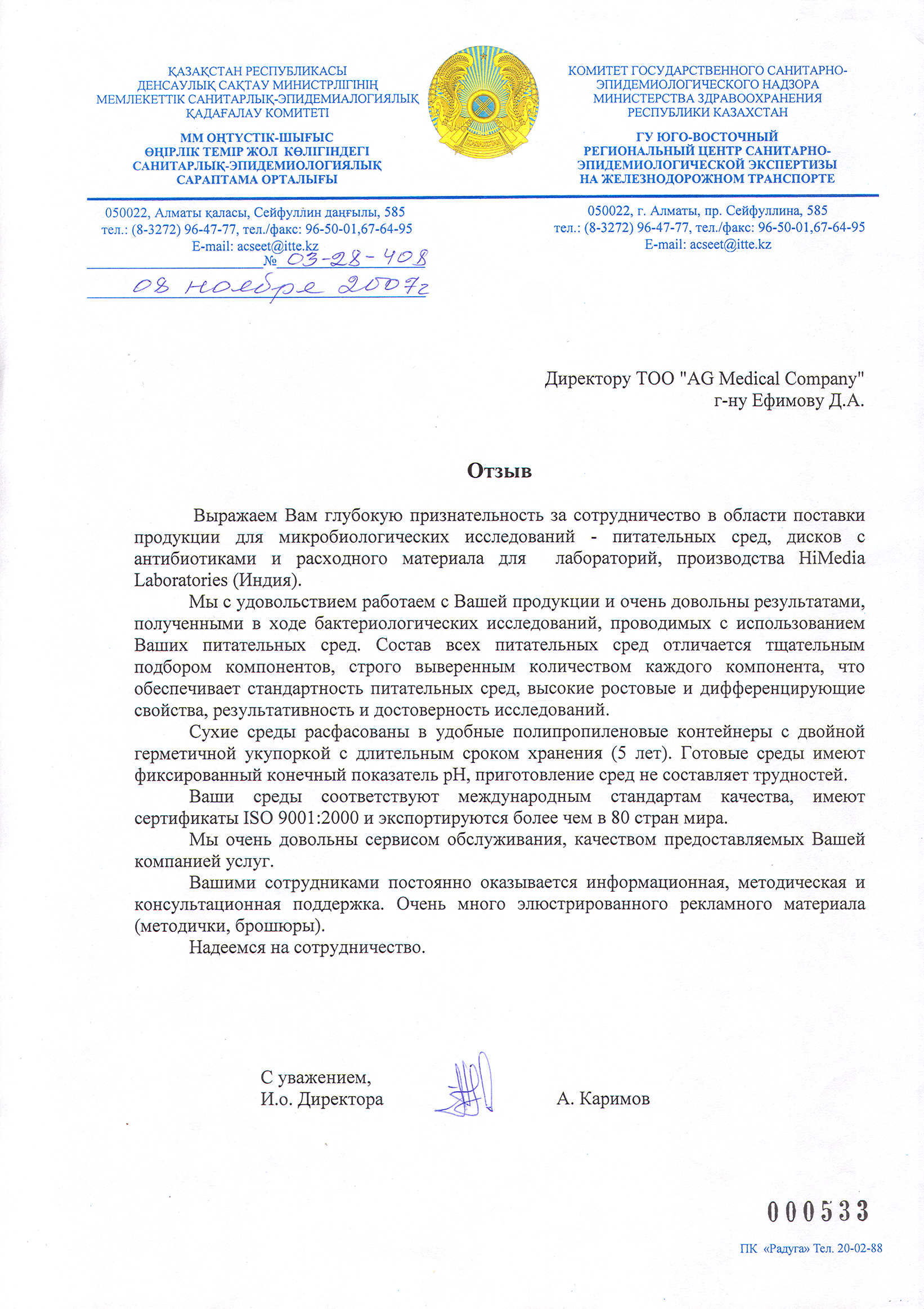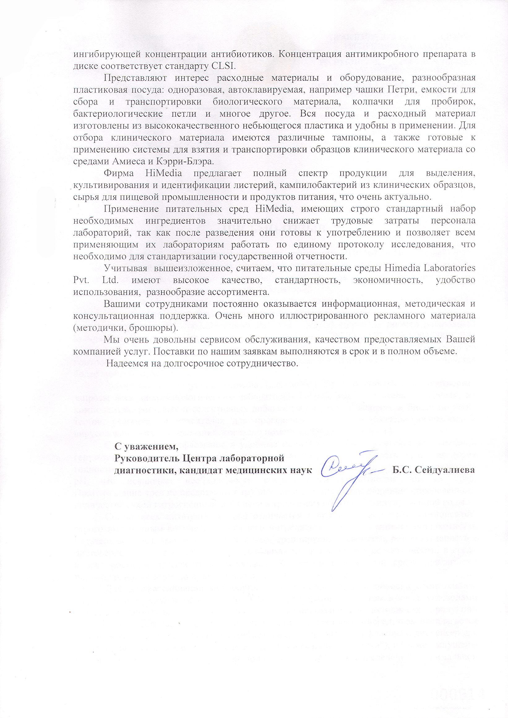Мы очень довольны сервисом обслуживания, качеством предоставляемых компанией услуг, ассортиментом и качеством продукции HiMedia Laboratories Pvt. Ltd. (Индия)